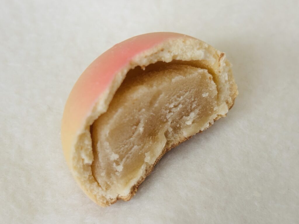 岡山で採れたももをジャムにして、さらにもも果肉入りの白餡で包んでいるので、食べた瞬間に桃の風味がふわっと口中に広がります。
